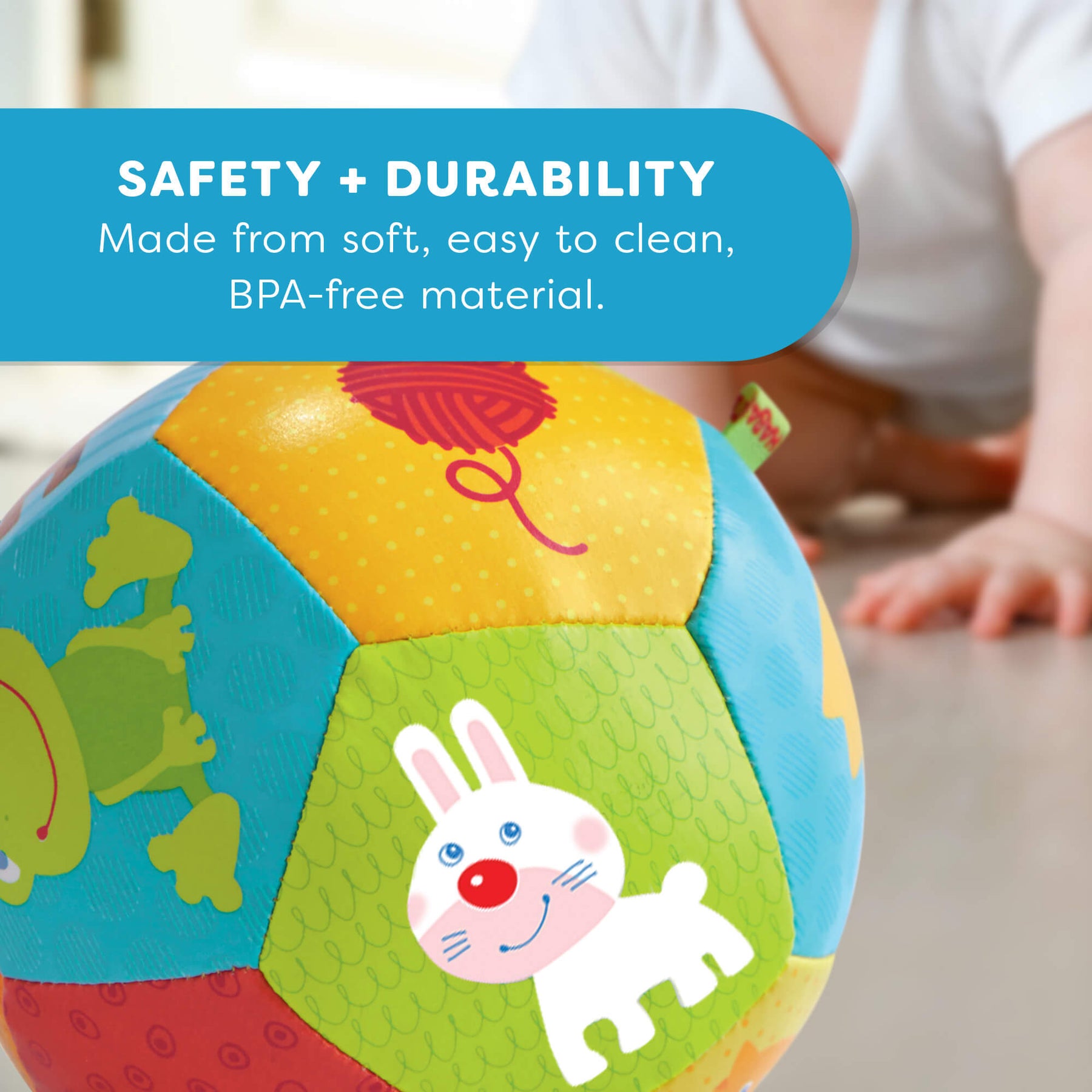 This toy is designed in Germany and made with strict care in China. All of HABA's soft baby balls and plush toys are made in China and all HABA toys are tested both in house and by certified 3rd party testing institutes to meet or exceed US and European safety standards for toys.