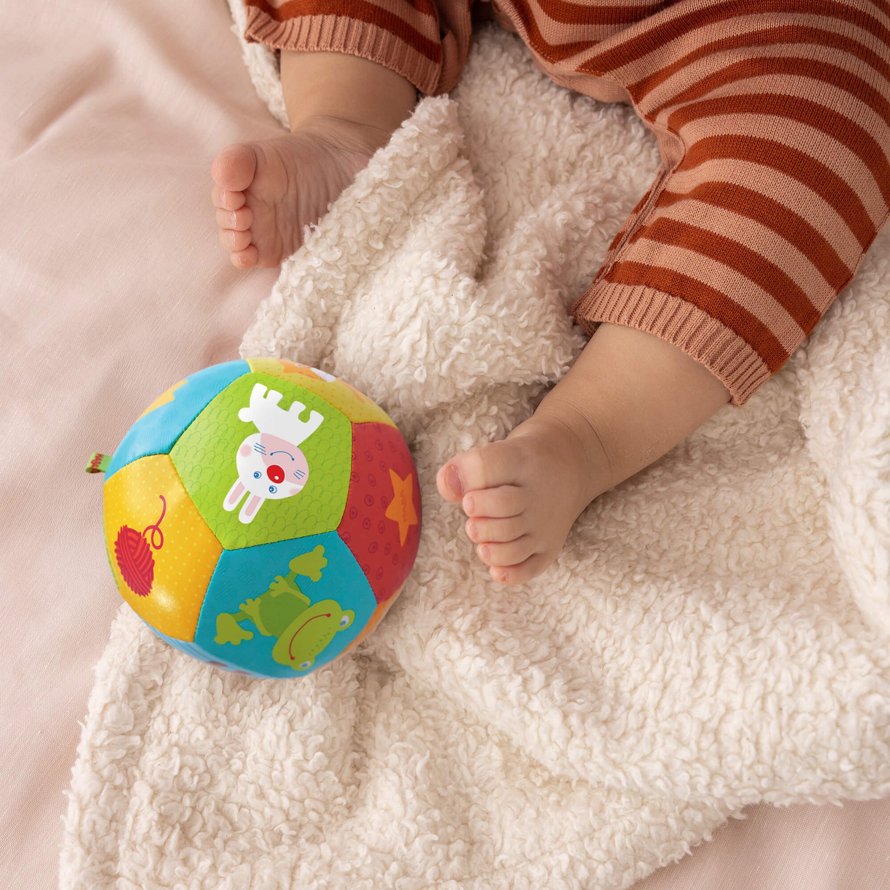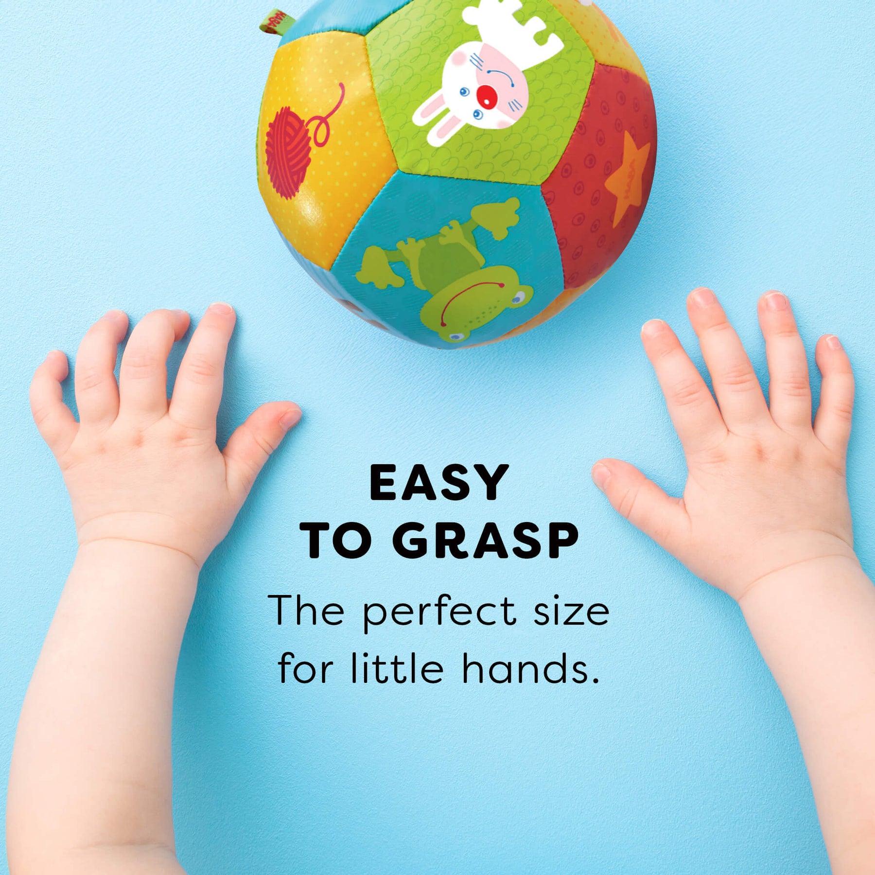 Your little sport will sure get a "kick" out of this cushy animal friends play ball! Kick it, roll it, throw it! No matter how you spin it, ball play provides key benefits that are an important part of the developmental progression such as improvement of motor skills, hand-eye coordination, and timing. Soft ball that easy for little hands to grasp.