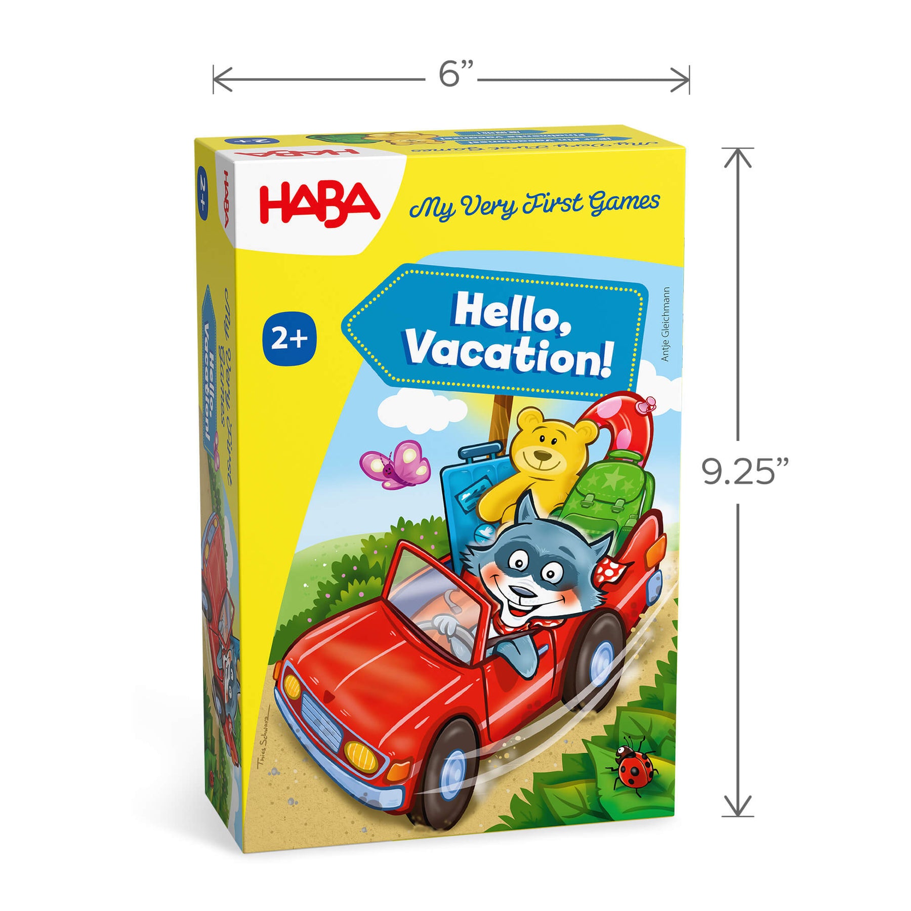 My Very First Games - Hello Vacation game car-shaped box on a wooden surface reading &