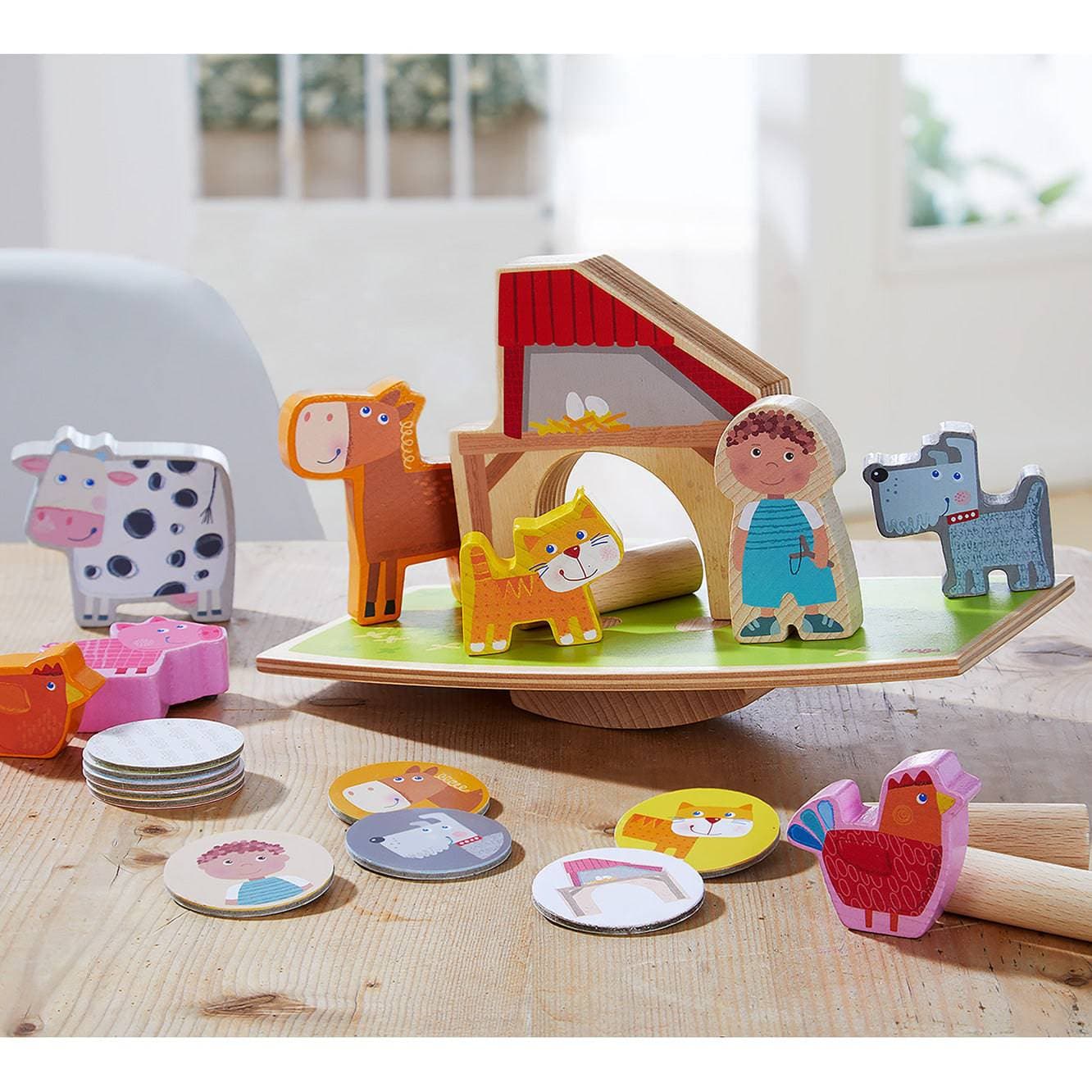 For the best chance of delivery by December 24th, order this item by December 16th.A fun stacking toy with two variants. In free play, the lovingly designed farmyard figures are stacked on the wobbly meadow in amusing arrangements. But the toy can also be played by matching images. Which figure goes next on the meadow? Simply turn over the farm tiles and stack according to what is shown. The challenge of stacking the animal figures on the wobbly meadow is a thoroughly enjoyable one.